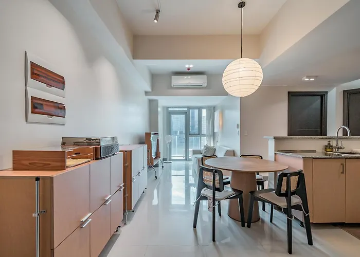 広々としたGolden Japandi 2Br Uptown Parksuits Bgc With Dryer マニラ市アパートはキッザニア・マニラとThe Islandから歩いてたった9分に位置し、都市の景色を望めます。 長い一日を過ごした後は、飛び込み用プールでひと泳ぎしてリラックスできます。